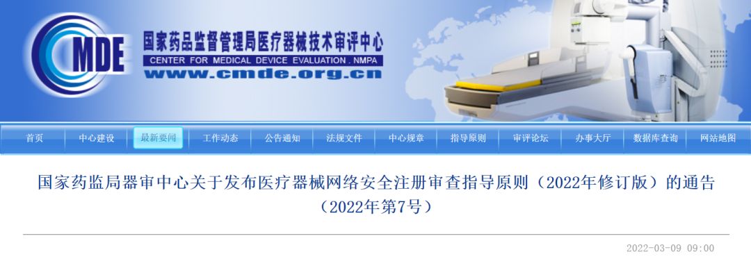 為進一步規(guī)范醫(yī)療器械網(wǎng)絡安全的管理,國家藥監(jiān)局器審中心組織制定了《醫(yī)療器械網(wǎng)絡安全注冊審查指導原則(2022年修訂版)》,現(xiàn)予發(fā)布。 特此通告。