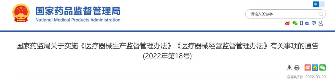 自2022年5月1日起,《食品藥品監(jiān)管總局關(guān)于實(shí)施〈醫(yī)療器械生產(chǎn)監(jiān)督管理辦法〉和〈醫(yī)療器械經(jīng)營(yíng)監(jiān)督管理辦法〉有關(guān)事項(xiàng)的通知》(食藥監(jiān)械監(jiān)〔2014〕143號(hào))予以廢止。