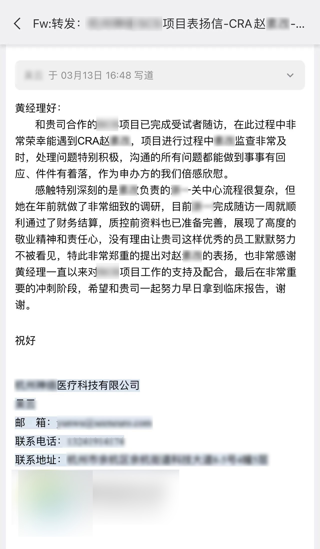感謝你們在臨床試驗中全力以赴,高效執(zhí)行