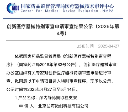 近日,我司自主研發(fā)的腦靜脈介入治療產(chǎn)品顱內(nèi)靜脈竇取栓支架,已正式進入國家創(chuàng)新醫(yī)療器械特別審批程序(綠色通道)! 這是對我們團隊技術(shù)實力與臨床價值的權(quán)威認(rèn)可,也標(biāo)志著中國腦靜脈疾病治療邁入全新階段。